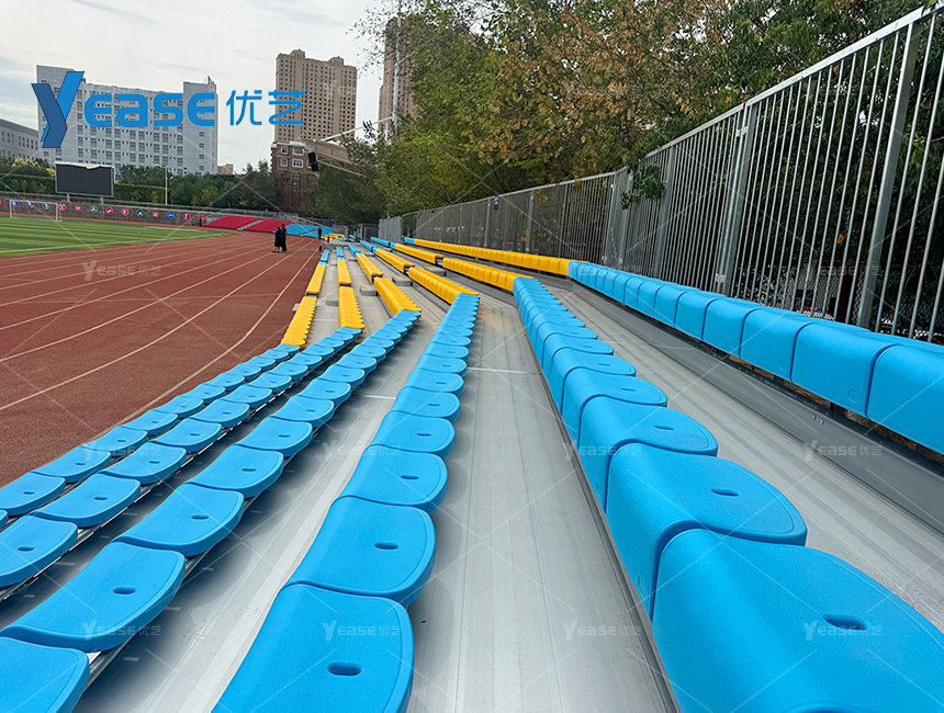 堅固耐用的鋼結構看臺系統(tǒng),滿足戶外場館長期使用與高承載要求。